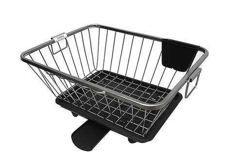 360 Degree Stainless Steel Utensil Basket, Drainer Dish Drainer Basket with Tray for Kitchen Vessel Drainer Rack, Dish Drying Rack with Tray and Cutlery Holder (Black)